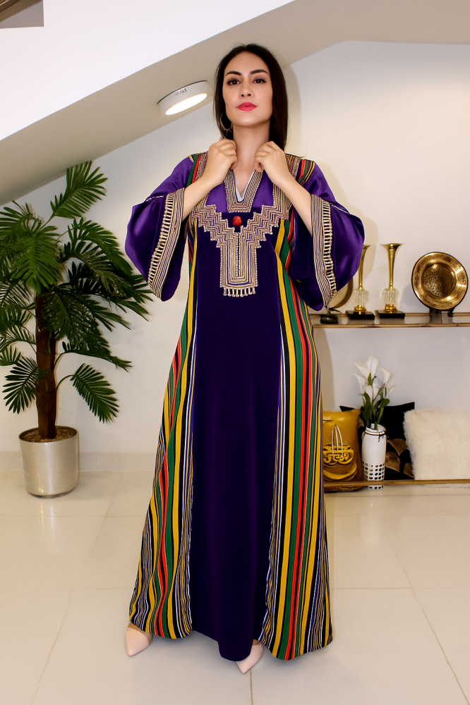 - تتنوع التصاميم بين البسيطة والمزخرفة، حيث تحتوي بعض الجلابيات على تطريزات أو زخارف تقليدية وفصوص كرستال بالوان مختلفه ولامعه